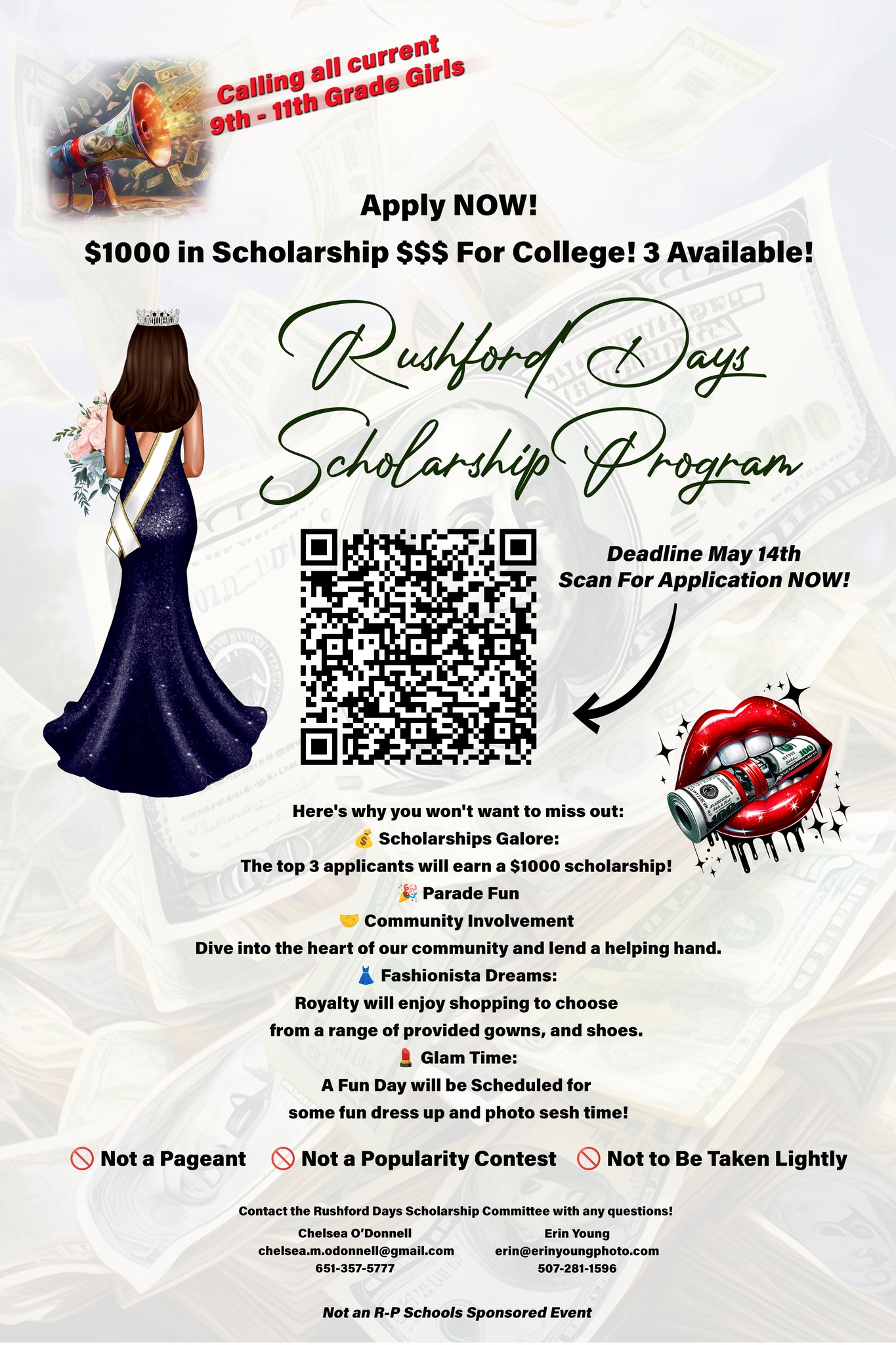 Being selected for the Rushford Days Queen and Ambassador Program means more than just earning a scholarship — it’s a chance to shine. These outstanding students are recognized for their character, leadership, and heart for the community. While the financial support helps with college classes and essentials, the true reward is the opportunity to grow, give back, and create lasting memories as part of something bigger.